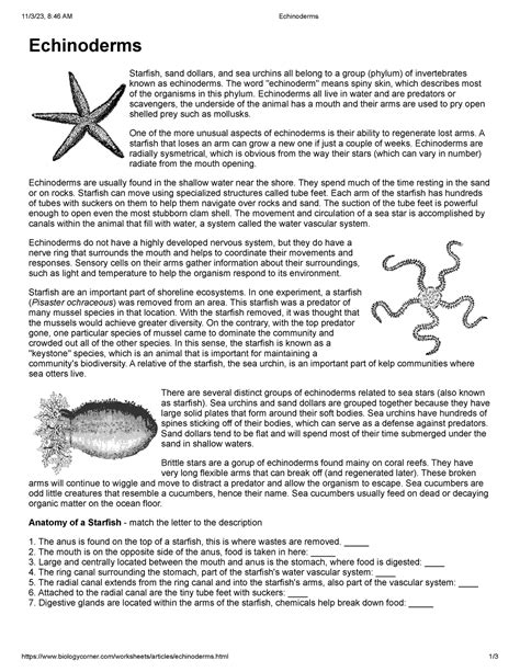 Web Echinoderms Science Worksheet Id: