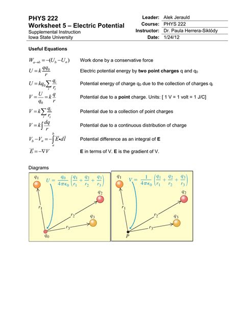 Electric Potential Worksheet. What is the value of the point charge? Find the change in electric potential energy of the proton for this displacement and explain.