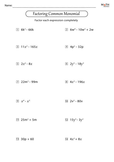 Factor Each Polynomial Worksheet. Multiplying and dividing monomials sheet. Web finding the greatest common factor of polynomials in a multiplication problem, the numbers multiplied together are called factors.the answer to a multiplication problem is.
